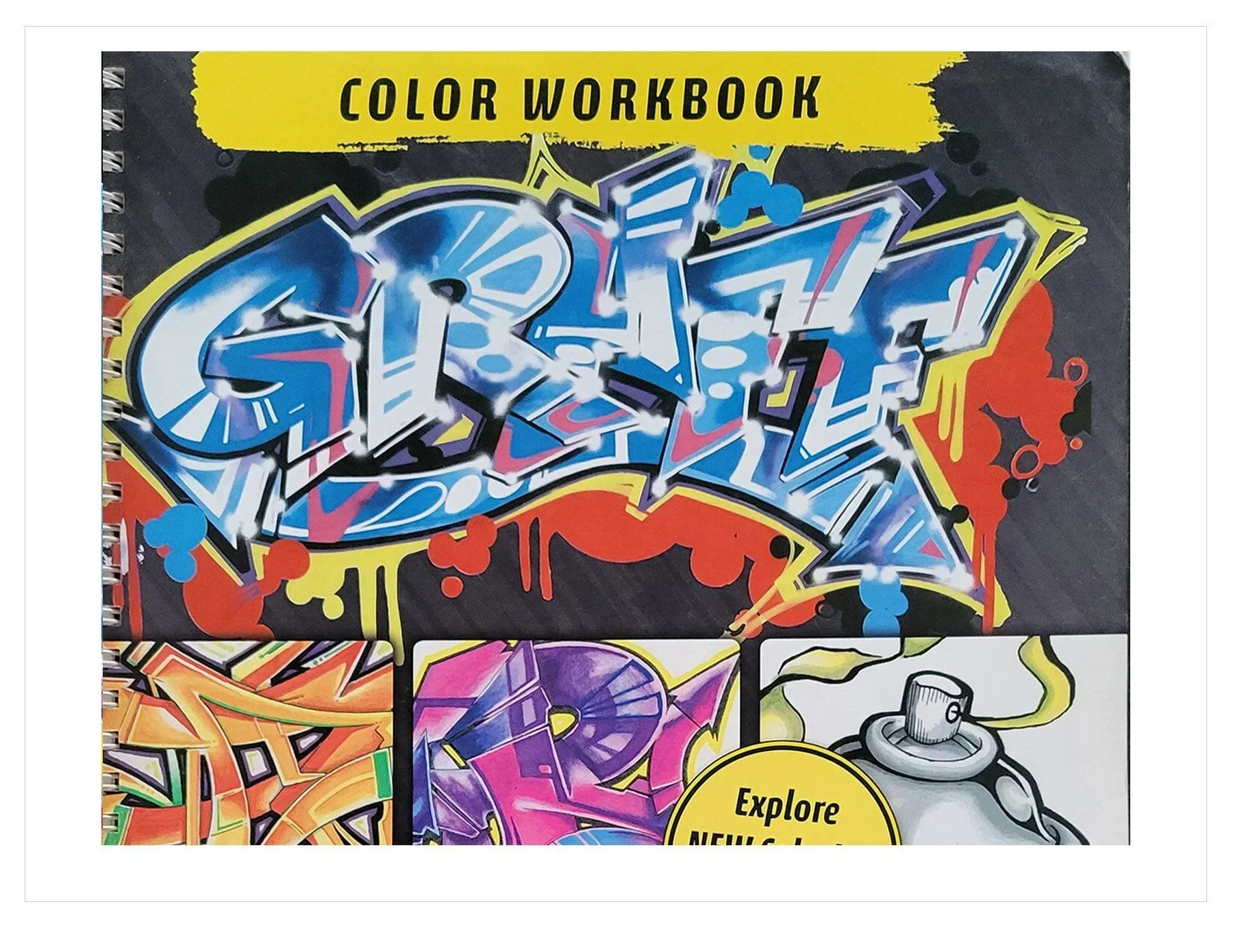 Sometimes we can look at Graffiti Art and wonder about all it’s complexities. And truthfully there is a lot of ground to cover and explore, but in this book we approach things from a different angle. Filled with black and white outlines, color theory, and letter studies, you can create various color experiments. Also, it is noted that coloring relieves stress, enhances mindfulness, and improves mood. .